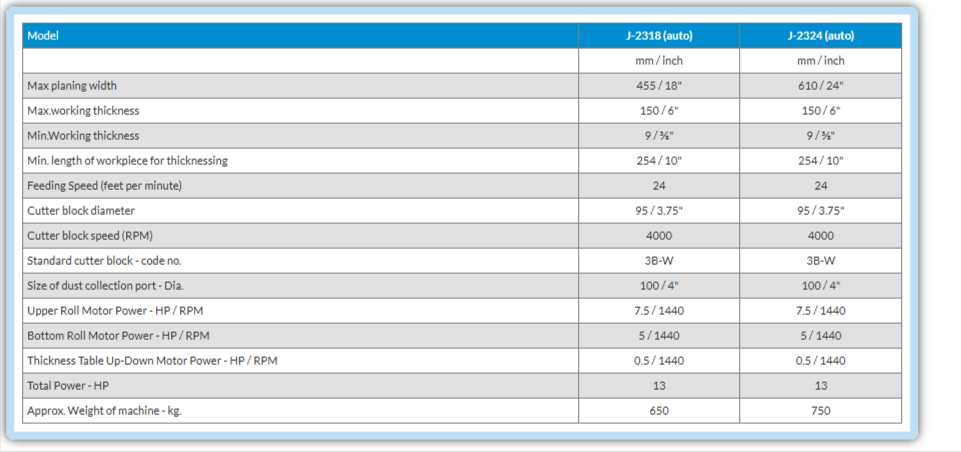 Heavy duty with Anti kick-back mechanism, 2 in-feed rollers for positive feeding with motorised up-down movement of thickness table.