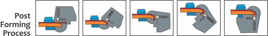 - Automatic post forming cycle with variable heating time, stop and go time & holding time, can be adjusted to profile.